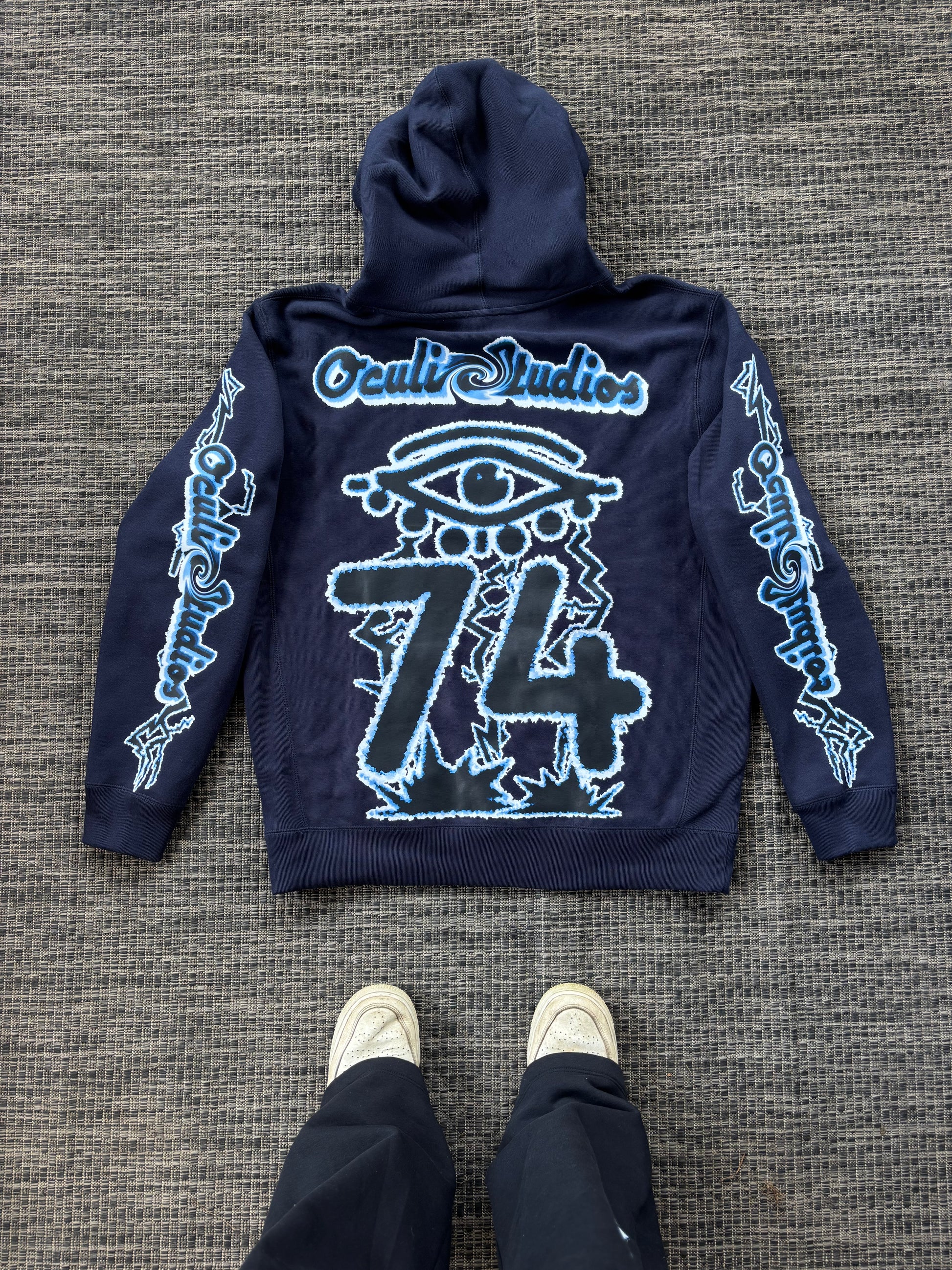 Crossgain hoodie with custom drawn graphics on chest, back and sleeves.